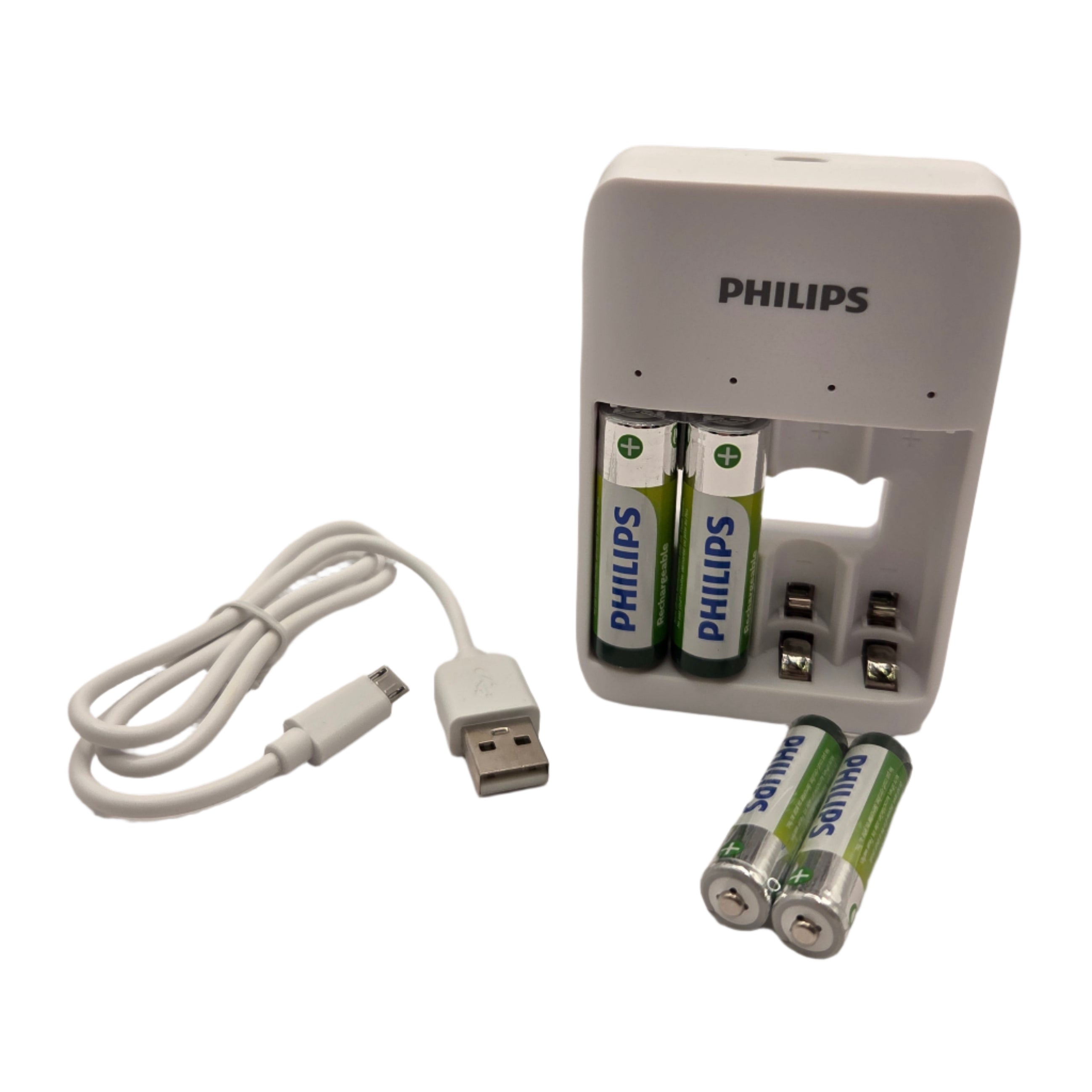 El cargador de pilas Philips SCB4013NB/00 es la opción perfecta para quienes buscan una solución práctica y fiable para recargar pilas AA y AAA. Su diseño compacto y ligero —pesa solo 159 gramos— permite llevarlo y usarlo cómodamente en casa, la oficina o durante cualquier viaje.
