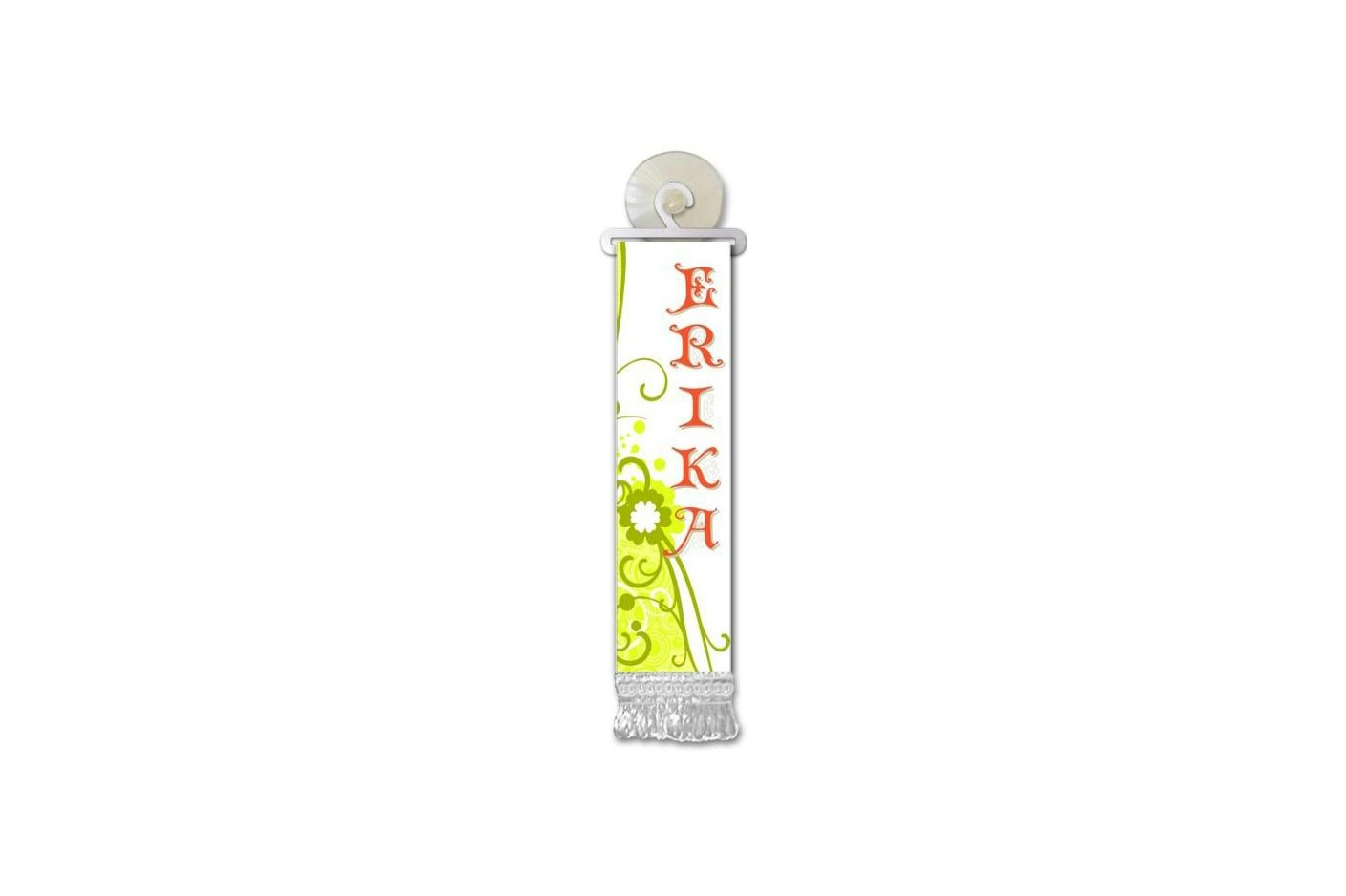 Ova elegantna mini zastavica s personaliziranim imenom savršen je izbor za sve koji žele istaknuti svoju individualnost ili razveseliti dragu osobu posebnim detaljem. Jednostavno se pričvršćuje na staklenu površinu pomoću praktične vakuumske čašice, pa je idealna za unutrašnjost automobila, ali i za stakla ureda, doma, vitrina ili ogledala.